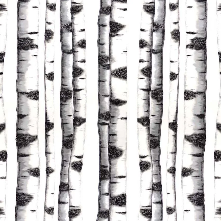 De trendy Skogsbryn stof van Arvidssons Textil is ontworpen door Mialotta Arvidsson-Mars. De stof is gemaakt van kwalitatief hoogwaardig katoen en heeft een fantastisch berkenpatroon in subtiele wit- en grijstinten. Mooi voor bijvoorbeeld een gordijn of een DIY-roomdivider!